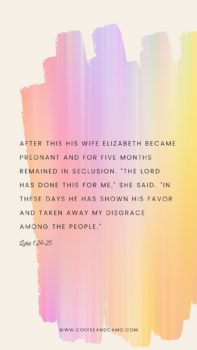 Upon my first reading of the scripture, I didn’t catch that Elizabeth isolated herself in the early days of her pregnancy. The Bible doesn’t say why she did this, but I can imagine a few reasons.