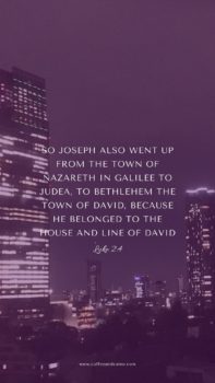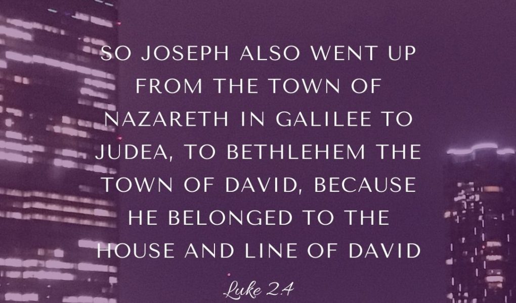 Mary and Joseph travel to Bethlehem for the census. Joseph, a descendant of David, must return to his hometown to be registered.