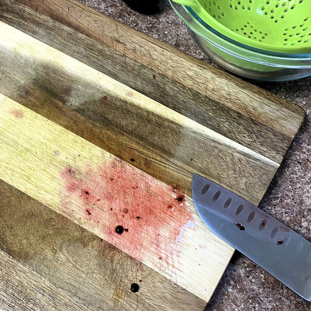 Something about these blackberries takes me back. As I work, their juices stain my wooden cutting board, forming little purple pools. In my mind, I’m back in my parents’ galley kitchen in the basement.